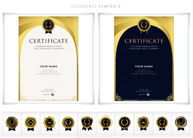 賞状、招待状、ディプロマ 、証書、表彰式、卒業式、記念賞、社内表彰などに最適なデザインテンプレート。