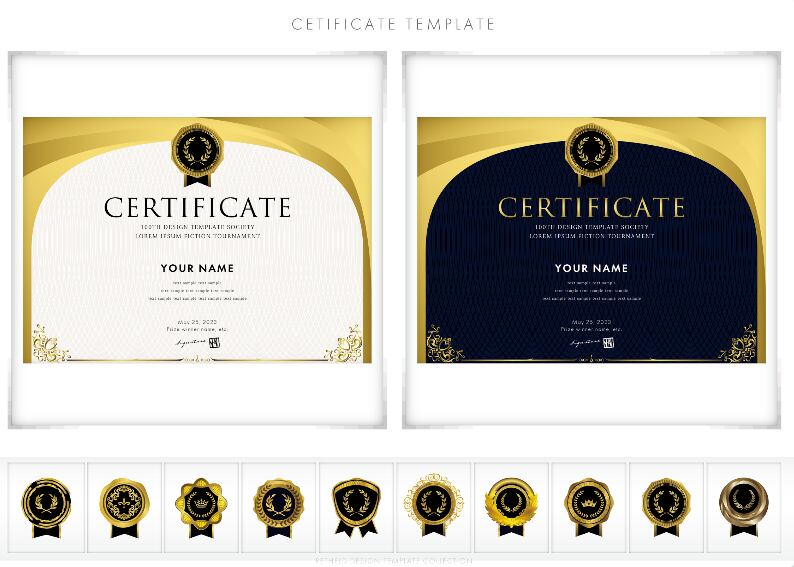 賞状、招待状、ディプロマ 、証書、表彰式、卒業式、記念賞、社内表彰などに最適なデザインテンプレート。