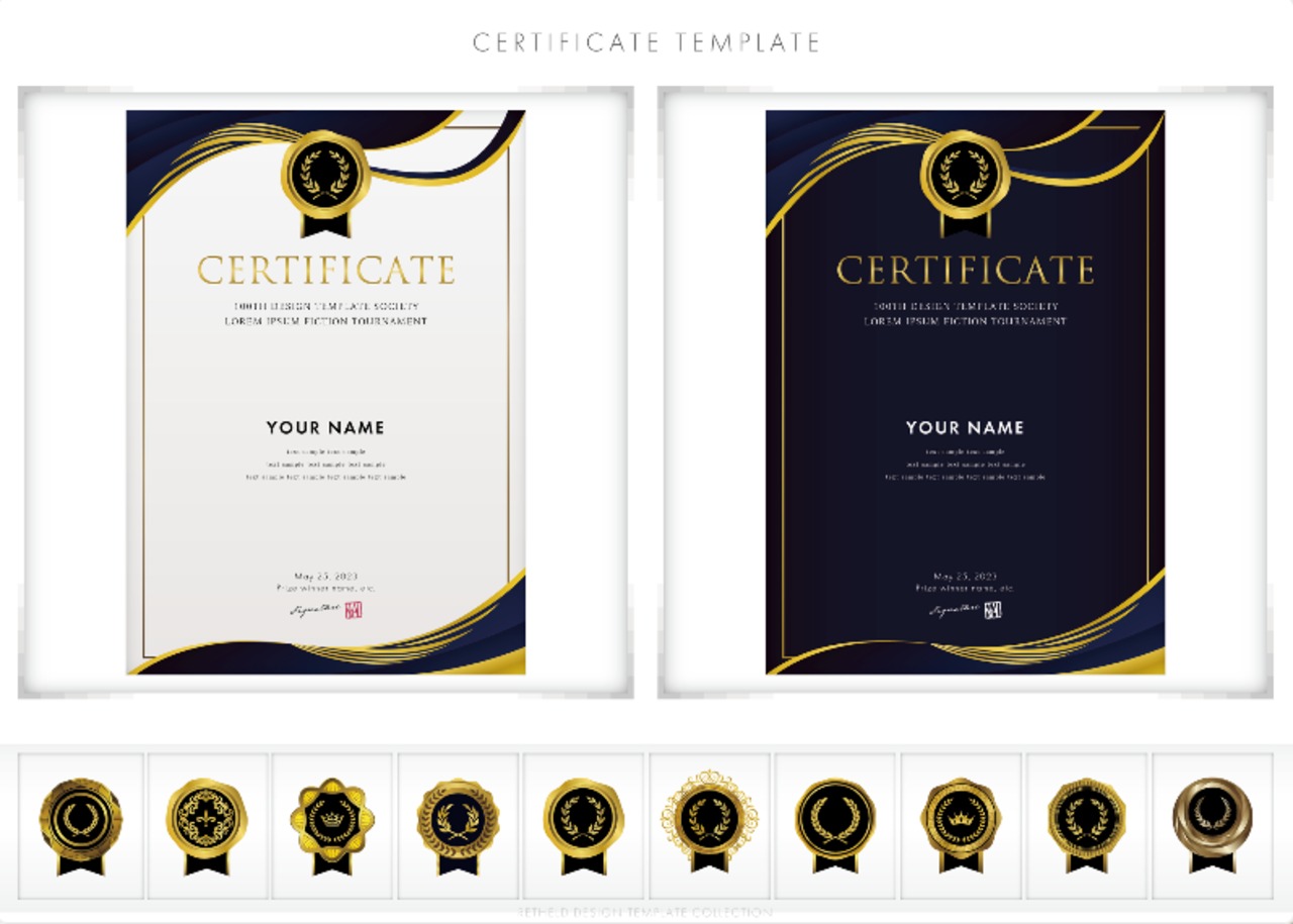 賞状、招待状、ディプロマ 、証書、表彰式、卒業式、記念賞、社内表彰などに最適なデザインテンプレート。
