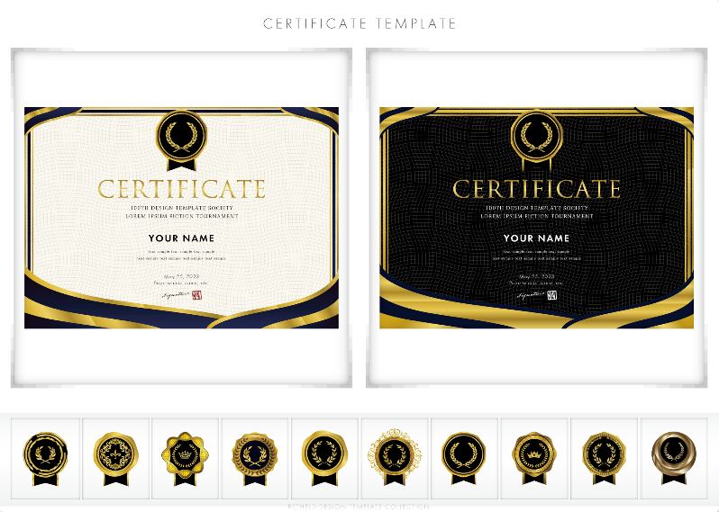 賞状、招待状、ディプロマ 、証書、表彰式、卒業式、記念賞、社内表彰などに最適なデザインテンプレート。