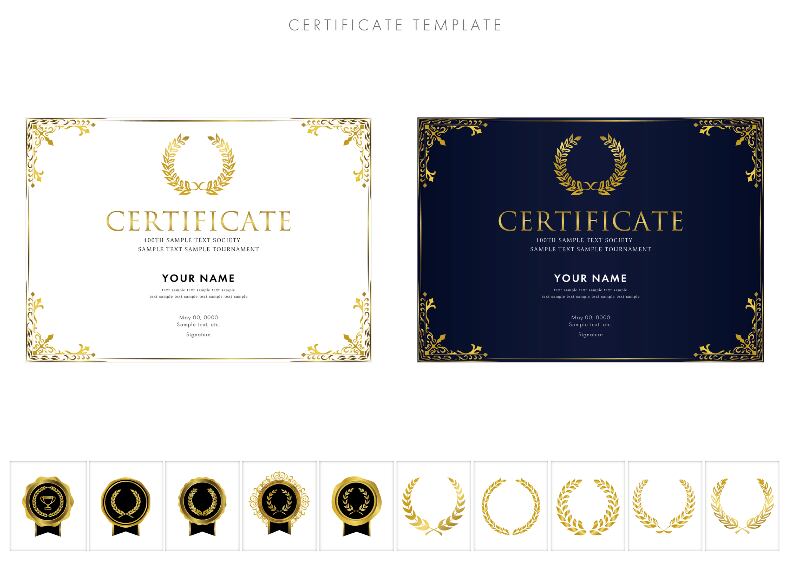賞状、招待状、ディプロマ 、証書、表彰式、卒業式、記念賞、社内表彰などに最適なデザインテンプレート。