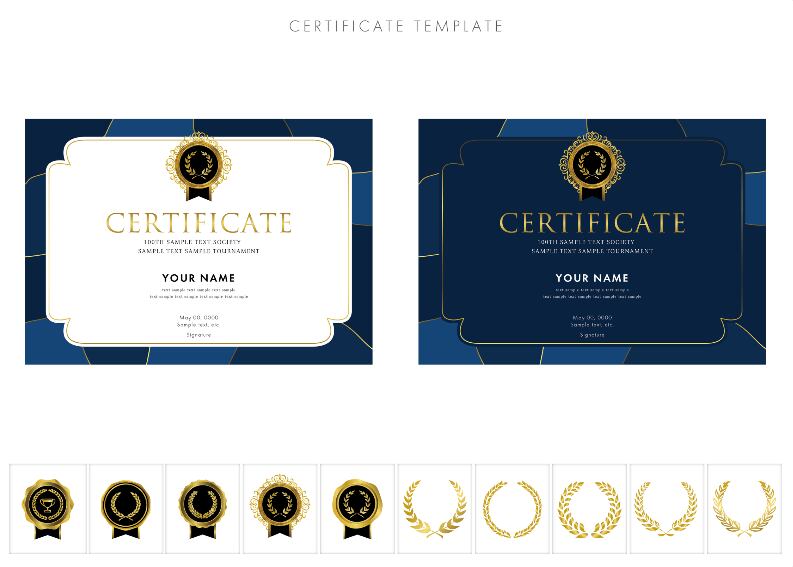 賞状、招待状、ディプロマ 、証書、表彰式、卒業式、記念賞、社内表彰などに最適なデザインテンプレート。