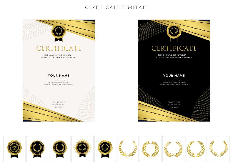 賞状、招待状、ディプロマ 、証書、表彰式、卒業式、記念賞、社内表彰などに最適なデザインテンプレート。