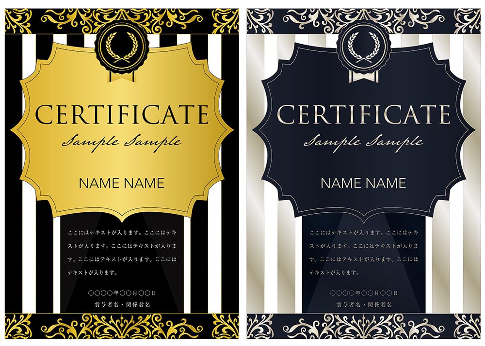 賞状、招待状、ディプロマ 、証書、表彰式、卒業式、記念賞、社内表彰などに最適なデザインテンプレート。
