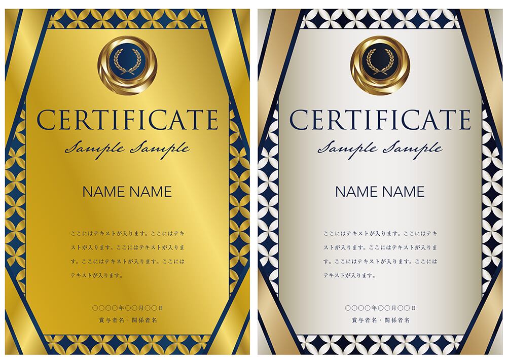 賞状、招待状、ディプロマ 、証書、表彰式、卒業式、記念賞、社内表彰などに最適なデザインテンプレート。