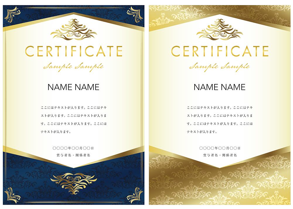 賞状、招待状、ディプロマ 、証書、表彰式、卒業式、記念賞、社内表彰などに最適なデザインテンプレート。