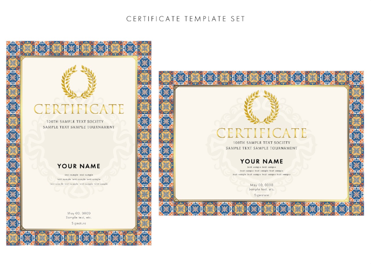 賞状、招待状、ディプロマ 、証書、表彰式、卒業式、記念賞、社内表彰などに最適なデザインテンプレート。