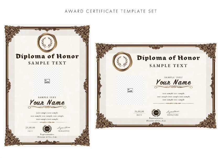賞状、招待状、ディプロマ 、証書、表彰式、卒業式、記念賞、社内表彰などに最適なデザインテンプレート。