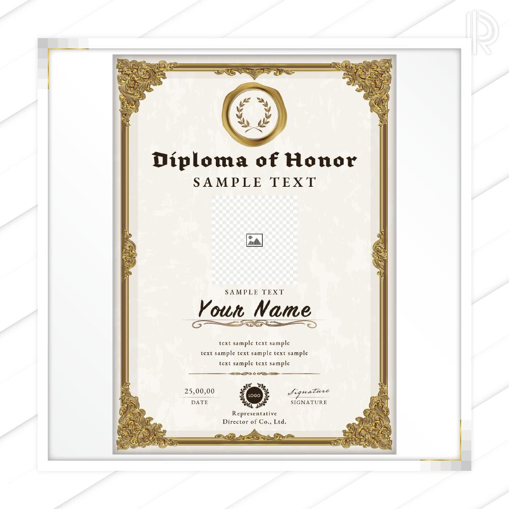 賞状、招待状、ディプロマ 、証書、表彰式、卒業式、記念賞、社内表彰などに最適なデザインテンプレート。
