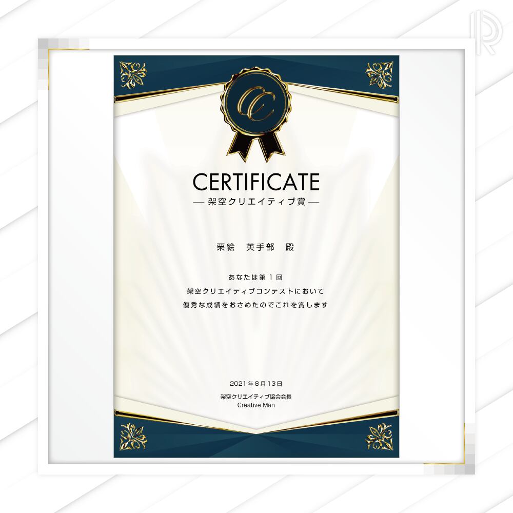 このテンプレートを使ってフルオーダーの賞状デザイン(印刷付き)依頼はこちらから↓