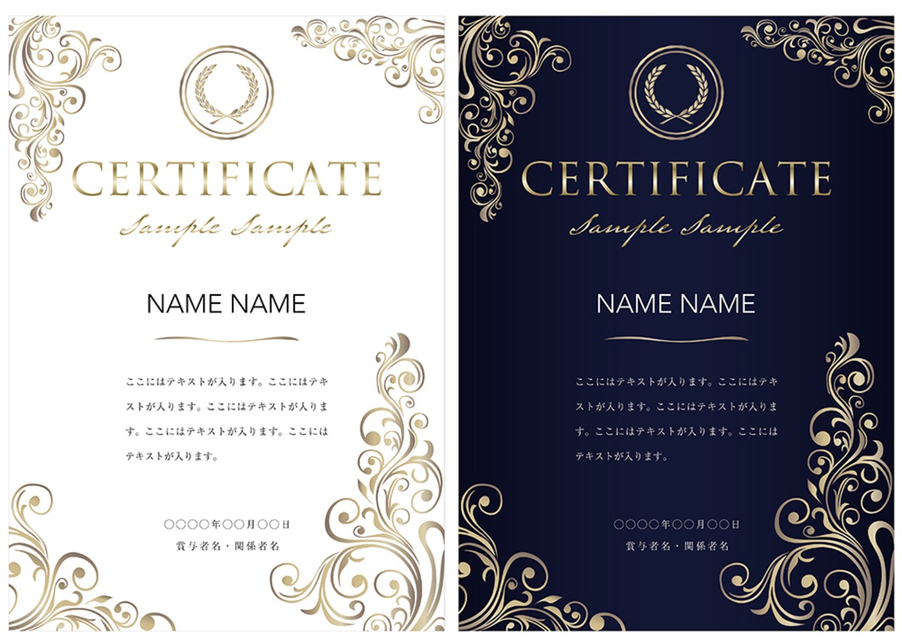 賞状、招待状、ディプロマ 、証書、表彰式、卒業式、記念賞、社内表彰などに最適なデザインテンプレート。