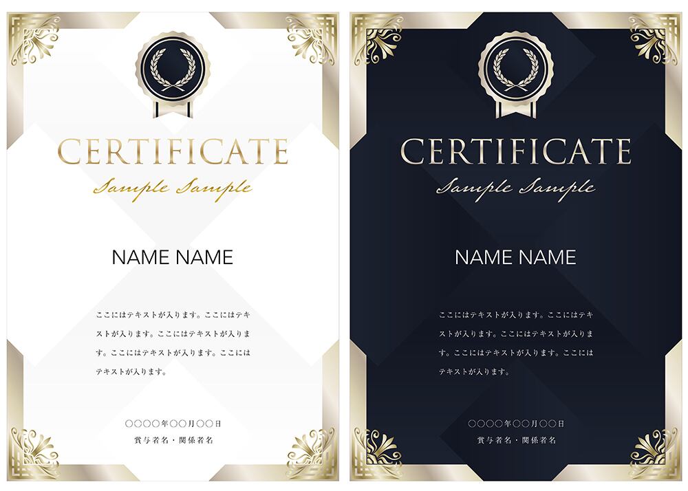 賞状、招待状、ディプロマ 、証書、表彰式、卒業式、記念賞、社内表彰などに最適なデザインテンプレート。