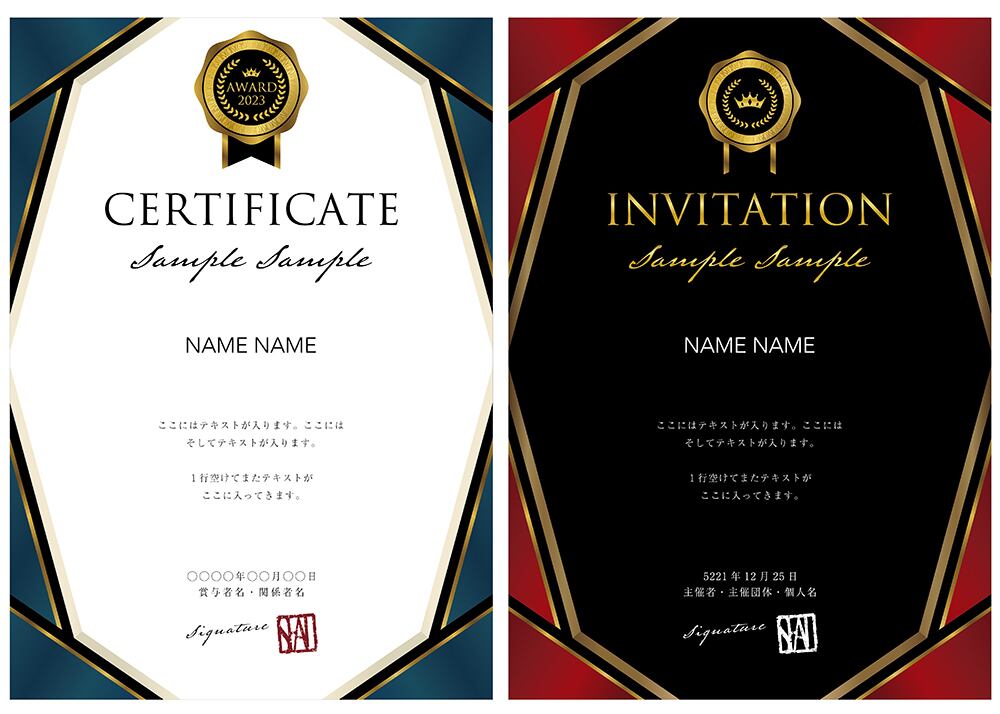 賞状、招待状、ディプロマ 、証書、表彰式、卒業式、記念賞、社内表彰などに最適なデザインテンプレート。