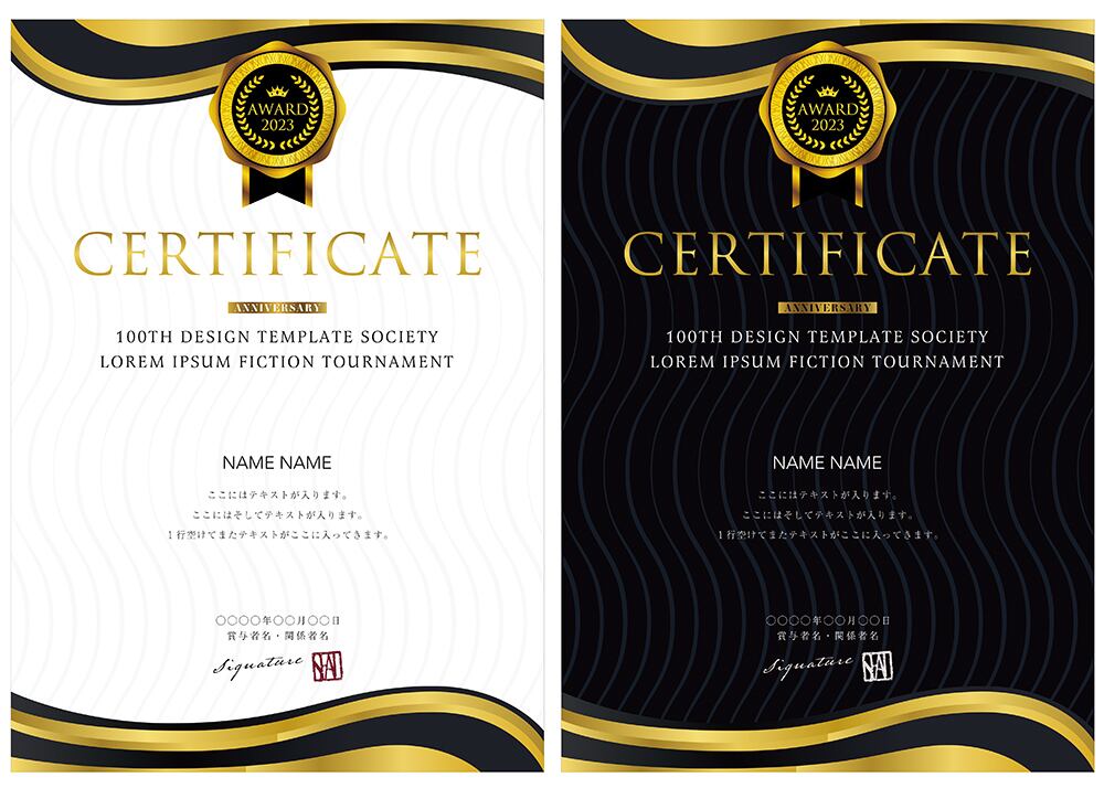 賞状、招待状、ディプロマ 、証書、表彰式、卒業式、記念賞、社内表彰などに最適なデザインテンプレート。