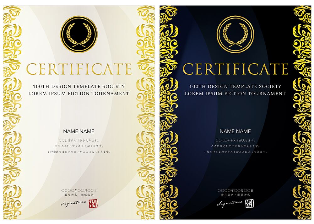 賞状、招待状、ディプロマ 、証書、表彰式、卒業式、記念賞、社内表彰などに最適なデザインテンプレート。