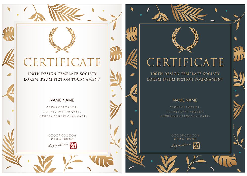 賞状、招待状、ディプロマ 、証書、表彰式、卒業式、記念賞、社内表彰などに最適なデザインテンプレート。