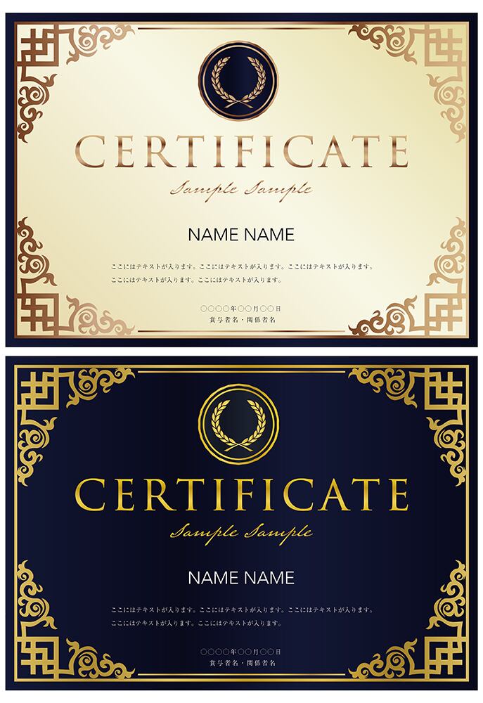 賞状、招待状、ディプロマ 、証書、表彰式、卒業式、記念賞、社内表彰などに最適なデザインテンプレート。