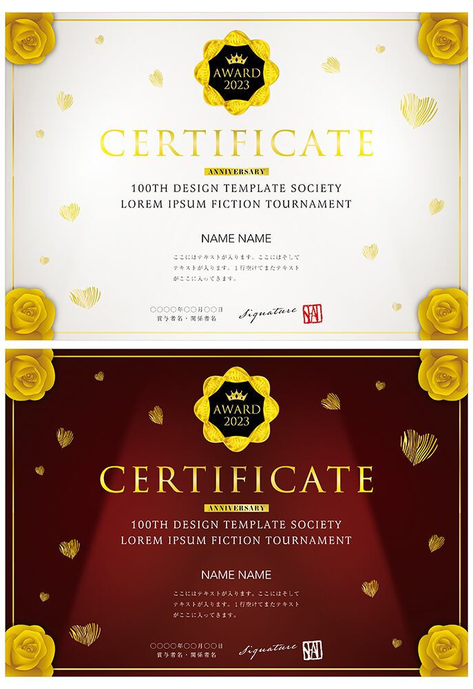 賞状、招待状、ディプロマ 、証書、表彰式、卒業式、記念賞、社内表彰などに最適なデザインテンプレート。