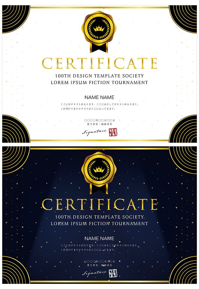 賞状、招待状、ディプロマ 、証書、表彰式、卒業式、記念賞、社内表彰などに最適なデザインテンプレート。