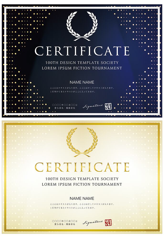 賞状、招待状、ディプロマ 、証書、表彰式、卒業式、記念賞、社内表彰などに最適なデザインテンプレート。