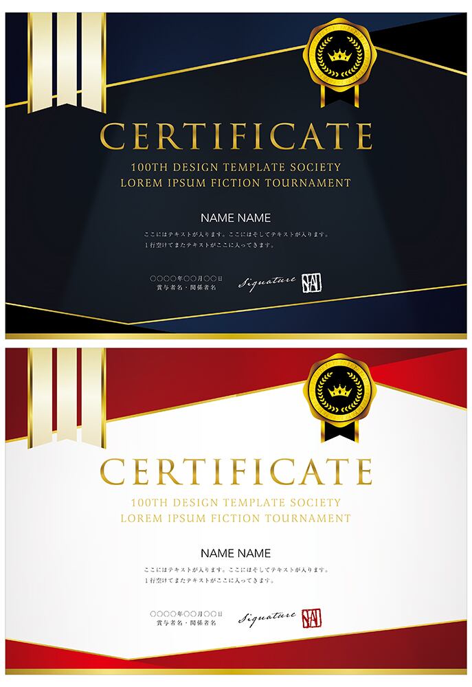 賞状、招待状、ディプロマ 、証書、表彰式、卒業式、記念賞、社内表彰などに最適なデザインテンプレート。