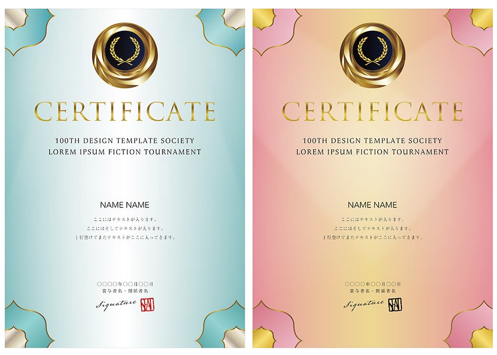 賞状、招待状、ディプロマ 、証書、表彰式、卒業式、記念賞、社内表彰などに最適なデザインテンプレート。