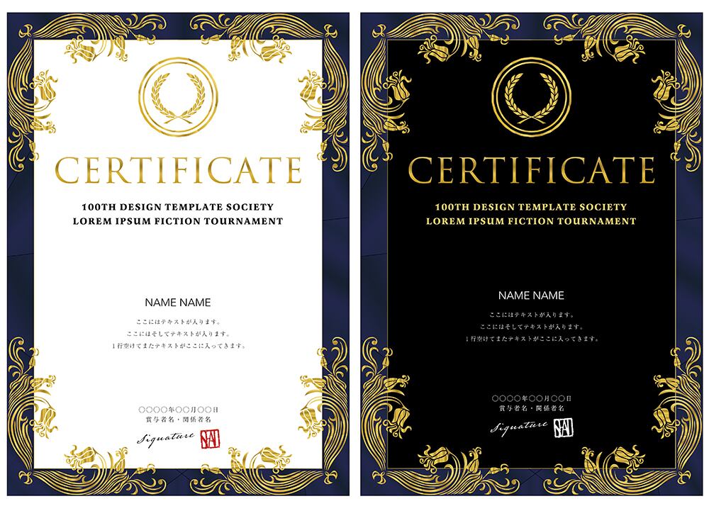 賞状、招待状、ディプロマ 、証書、表彰式、卒業式、記念賞、社内表彰などに最適なデザインテンプレート。