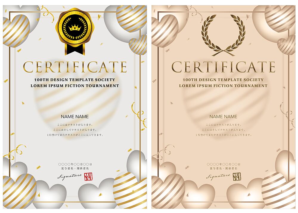 賞状、招待状、ディプロマ 、証書、表彰式、卒業式、記念賞、社内表彰などに最適なデザインテンプレート。