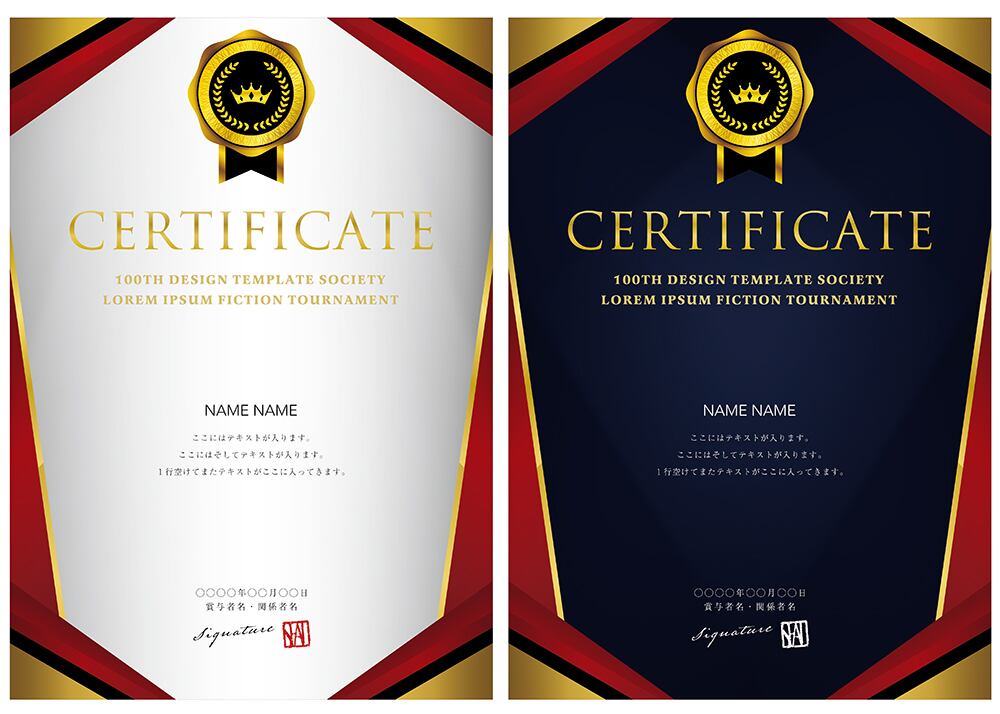 賞状、招待状、ディプロマ 、証書、表彰式、卒業式、記念賞、社内表彰などに最適なデザインテンプレート。
