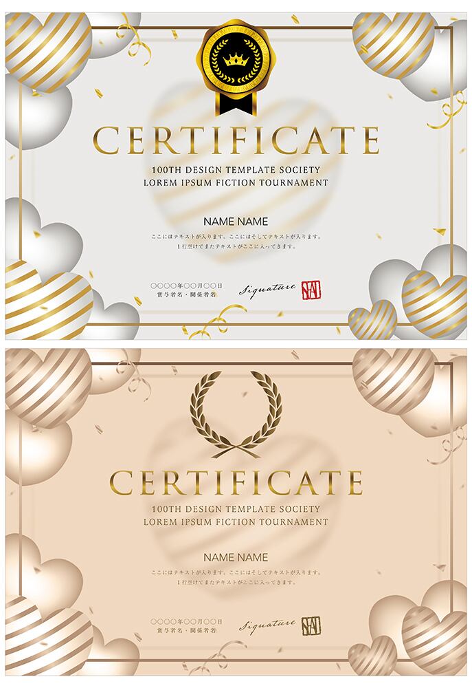 賞状、招待状、ディプロマ 、証書、表彰式、卒業式、記念賞、社内表彰などに最適なデザインテンプレート。