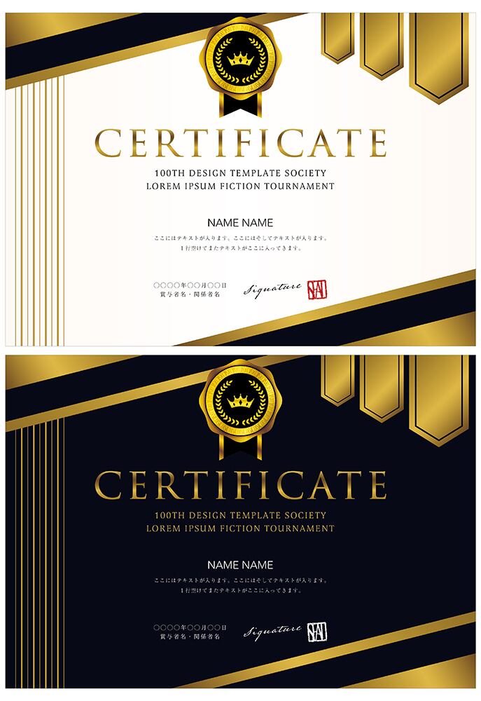 賞状、招待状、ディプロマ 、証書、表彰式、卒業式、記念賞、社内表彰などに最適なデザインテンプレート。