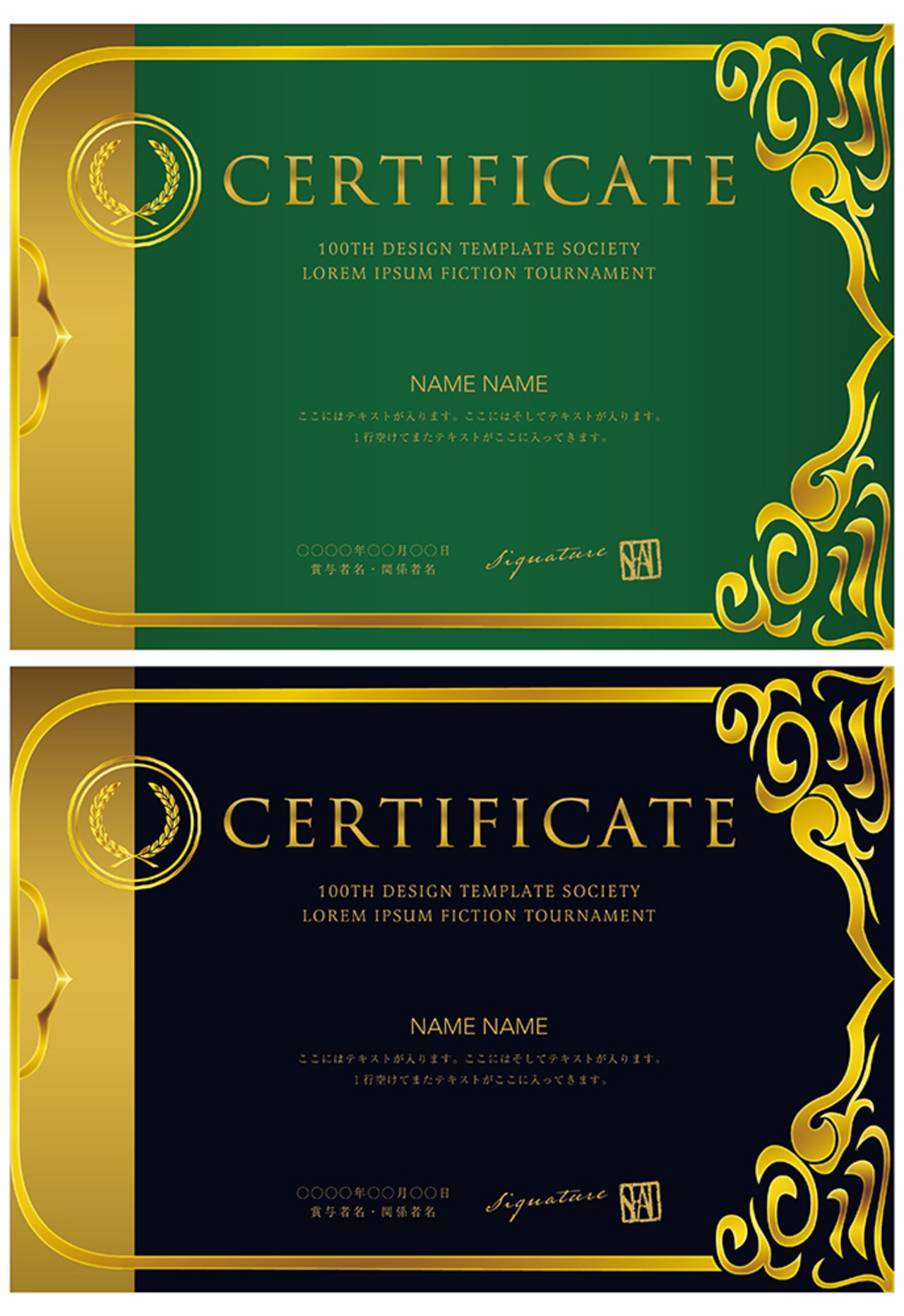 賞状、招待状、ディプロマ 、証書、表彰式、卒業式、記念賞、社内表彰などに最適なデザインテンプレート。