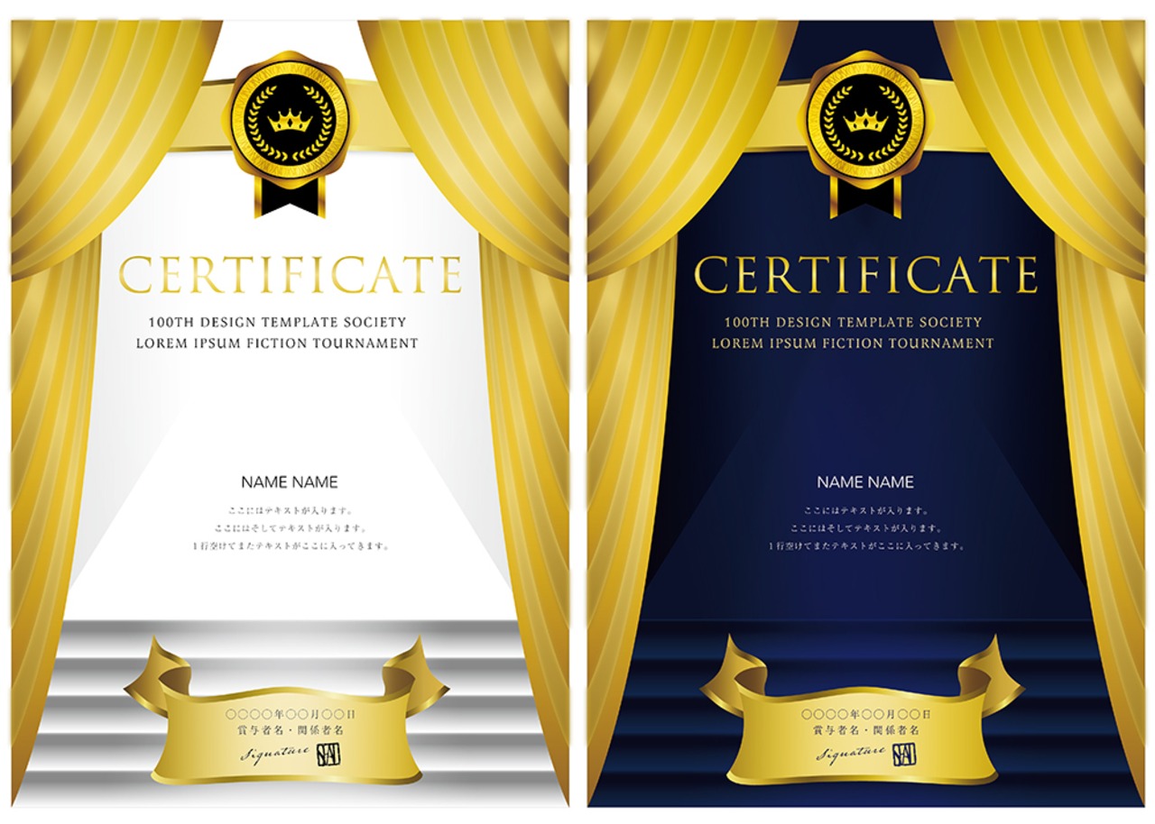 賞状、招待状、ディプロマ 、証書、表彰式、卒業式、記念賞、社内表彰などに最適なデザインテンプレート。