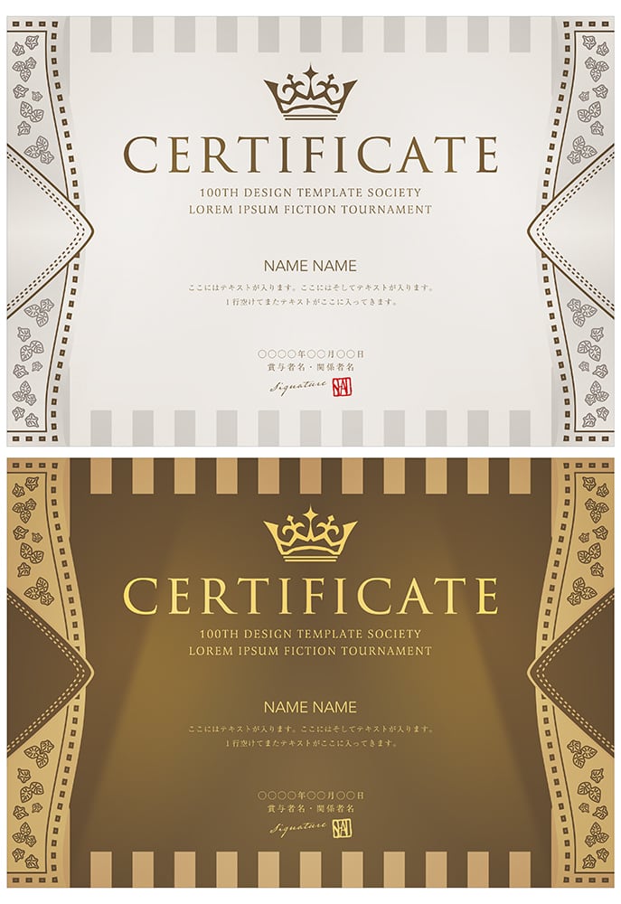 賞状、招待状、ディプロマ 、証書、表彰式、卒業式、記念賞、社内表彰などに最適なデザインテンプレート。