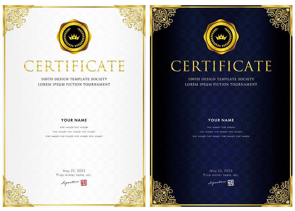 賞状、招待状、ディプロマ 、証書、表彰式、卒業式、記念賞、社内表彰などに最適なデザインテンプレート。