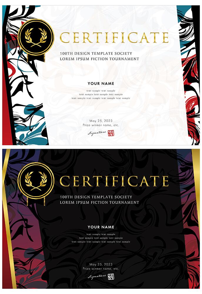 賞状、招待状、ディプロマ 、証書、表彰式、卒業式、記念賞、社内表彰などに最適なデザインテンプレート。