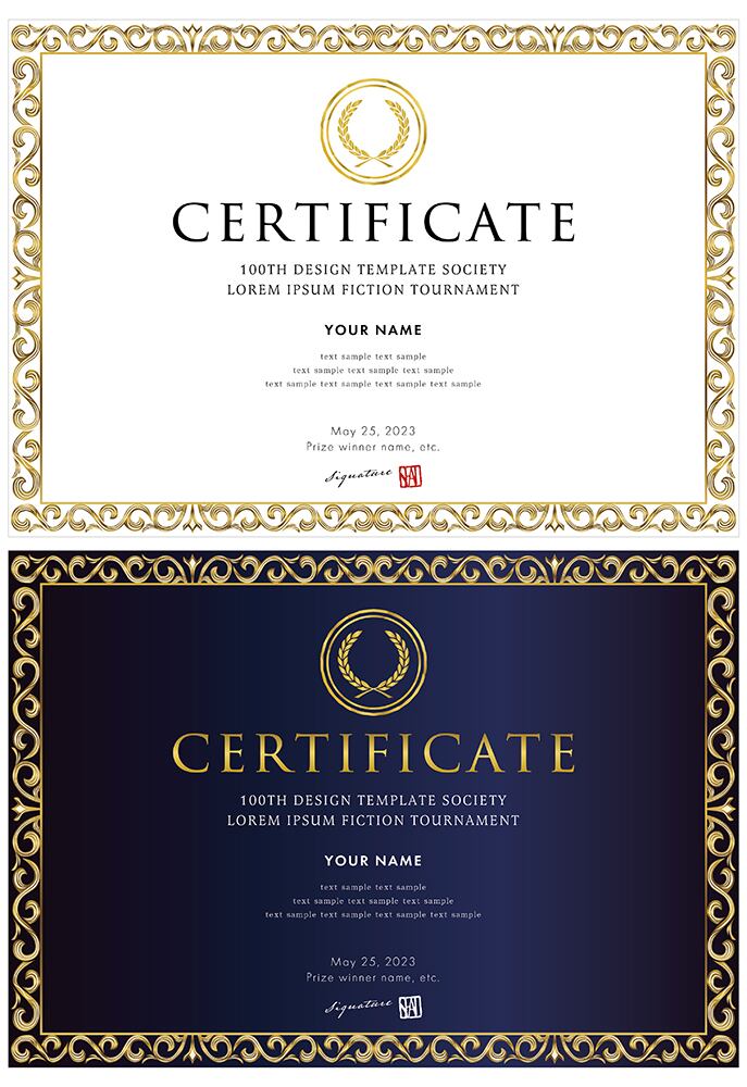 賞状、招待状、ディプロマ 、証書、表彰式、卒業式、記念賞、社内表彰などに最適なデザインテンプレート。