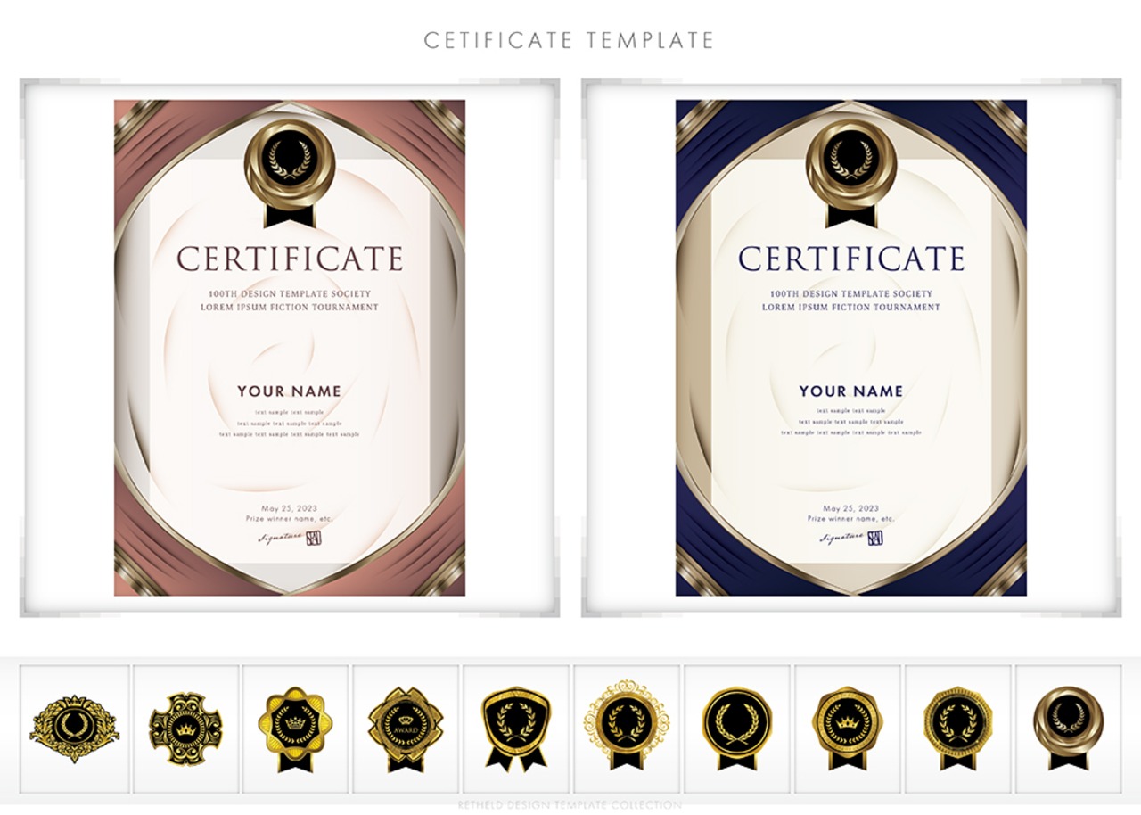 賞状、招待状、ディプロマ 、証書、表彰式、卒業式、記念賞、社内表彰などに最適なデザインテンプレート。
