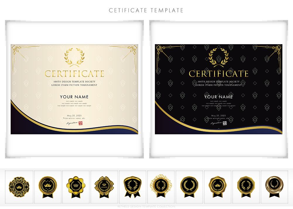 賞状、招待状、ディプロマ 、証書、表彰式、卒業式、記念賞、社内表彰などに最適なデザインテンプレート。